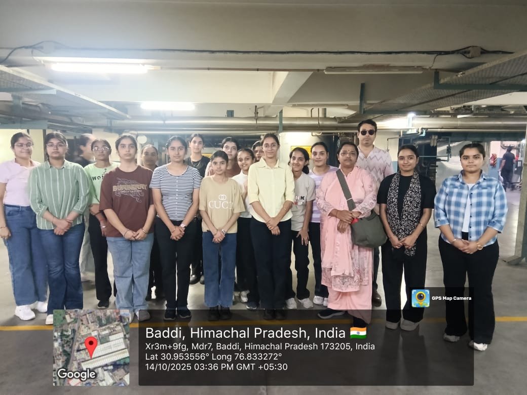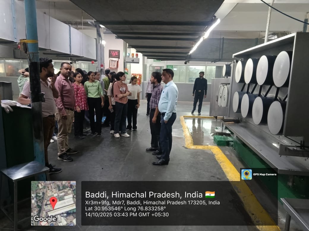 real-world experience. A group of 41 students from B.Com and BBA, guided by Dr. Pawan Kumar Dubey and Dr. Desh Raj, visited Birla Textile Millsand Cure Tech Pharma Company in Baddi. The visit, supported by Himalayan NGO and Laghu Udyog Sang, was coordinated by Shri Raneh Rana,